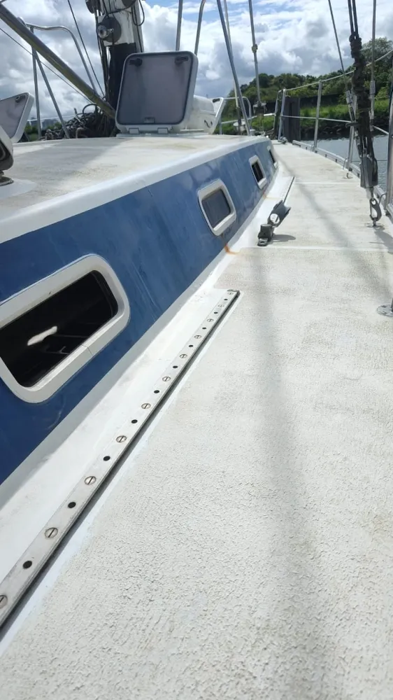 Casco reformado, inspecionado com ultrassom por engenheiro naval e pintado em 07/22