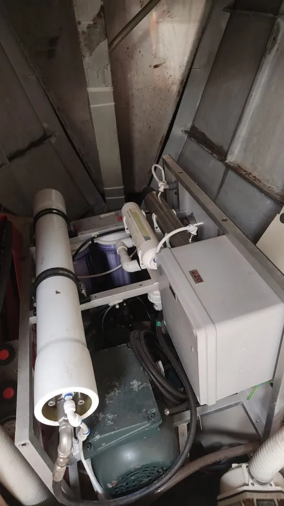Dessalinizador 25L/h, novo, sem uso (necessita ser instalado) com grande quantidade de filtros de reserva.