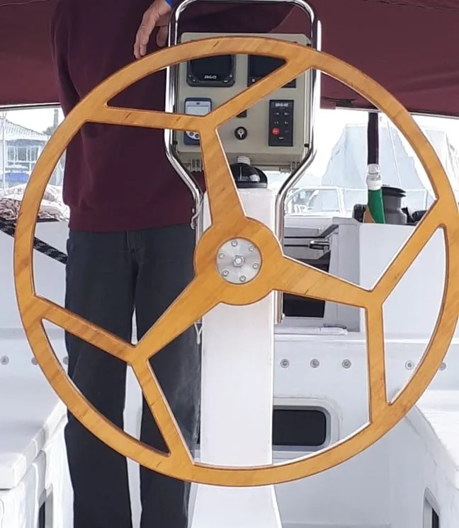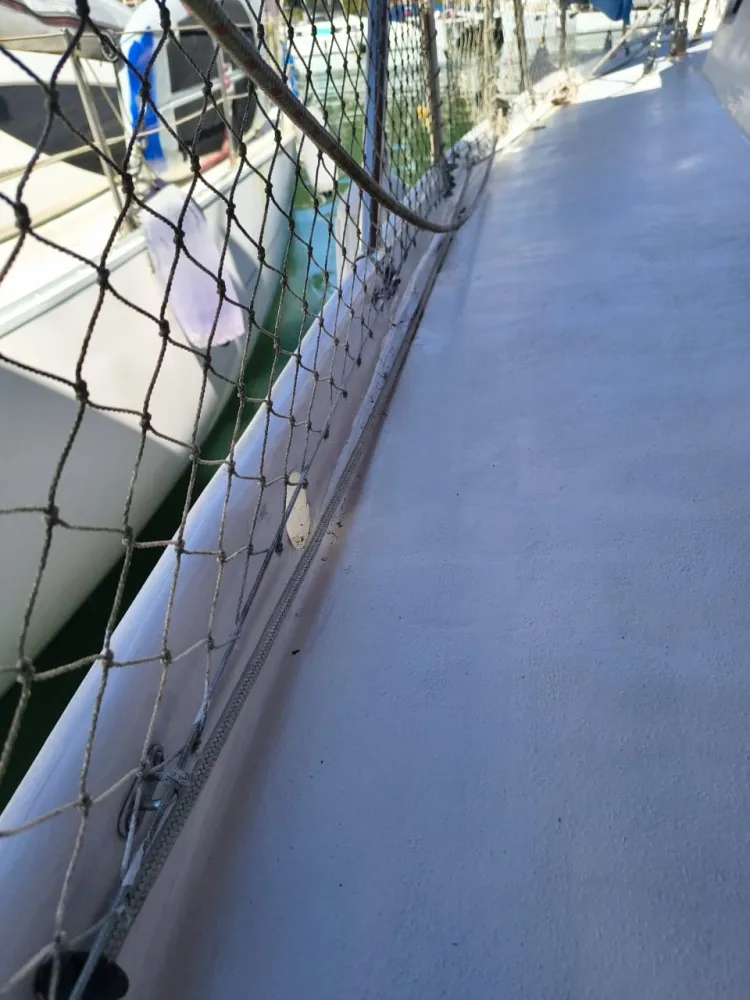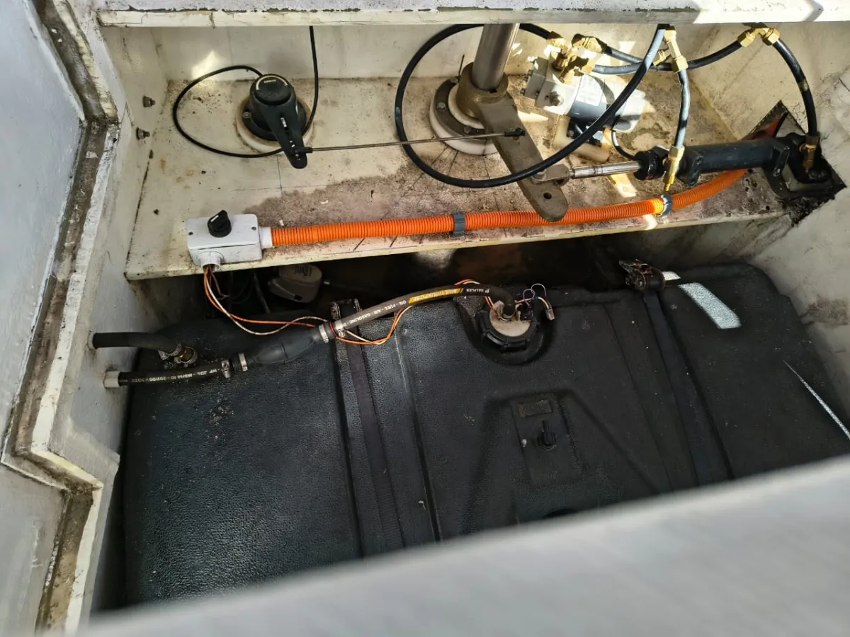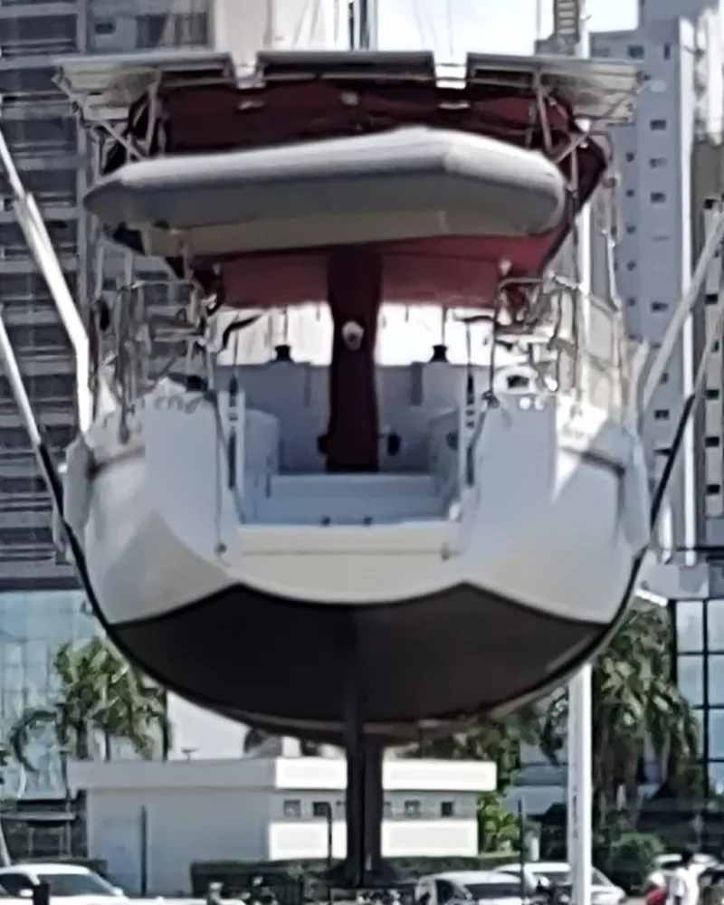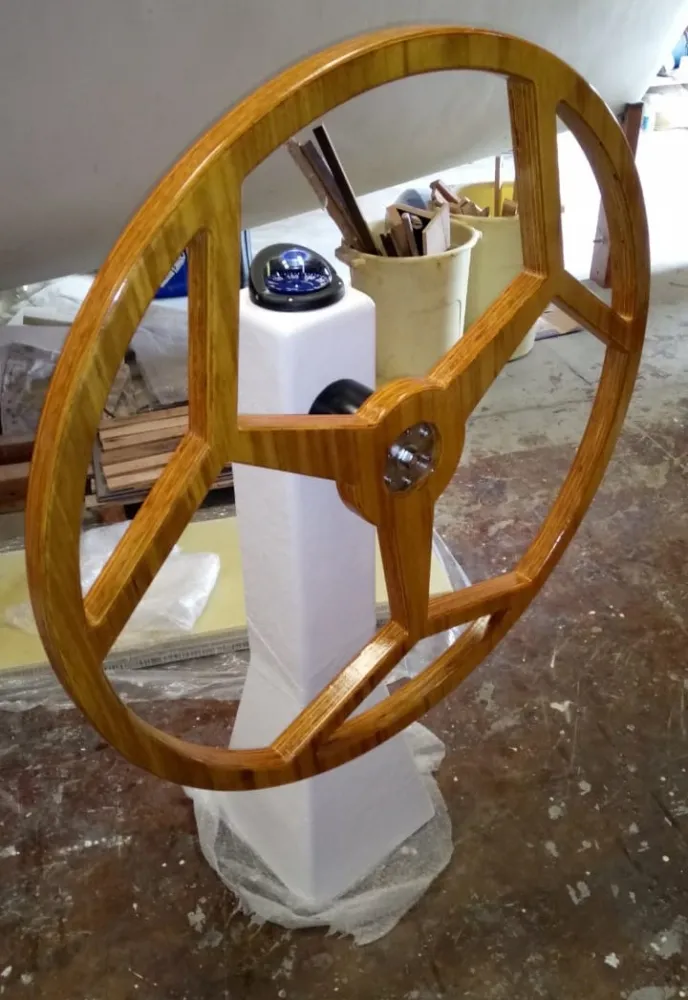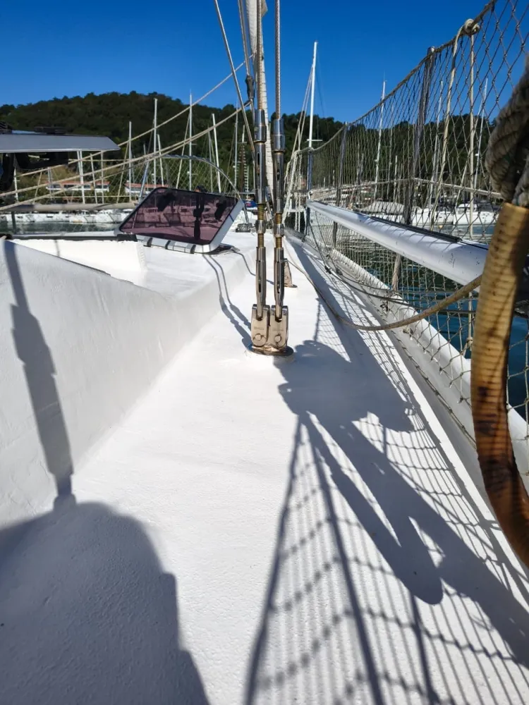 Quilha estrutural na proa com 8 cm de laminação de fibra maciça descendo até a popa com 5 cm.