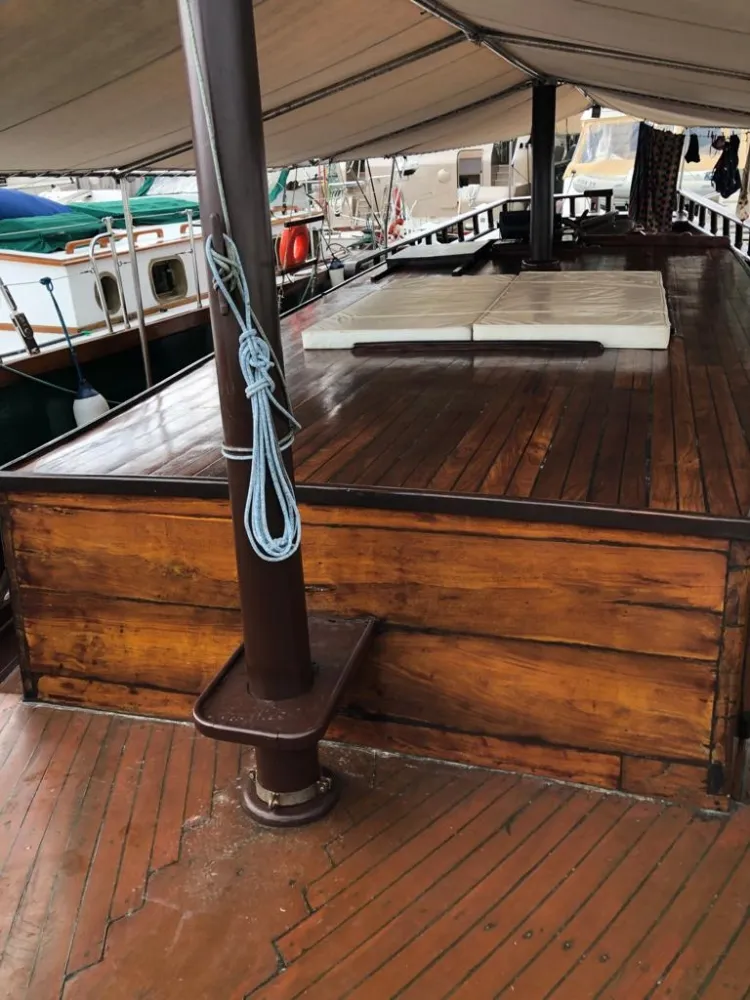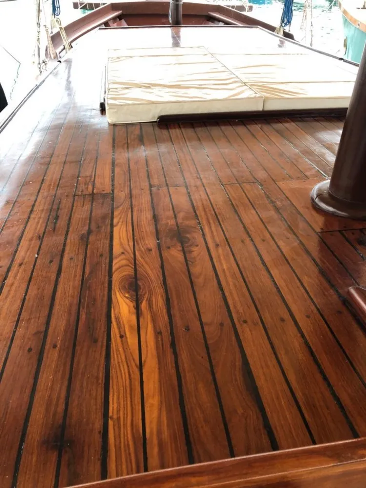 Convés com chuveiro de água doce e mangueira com água salgada para lavagem do deck.