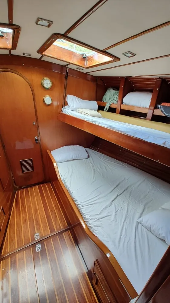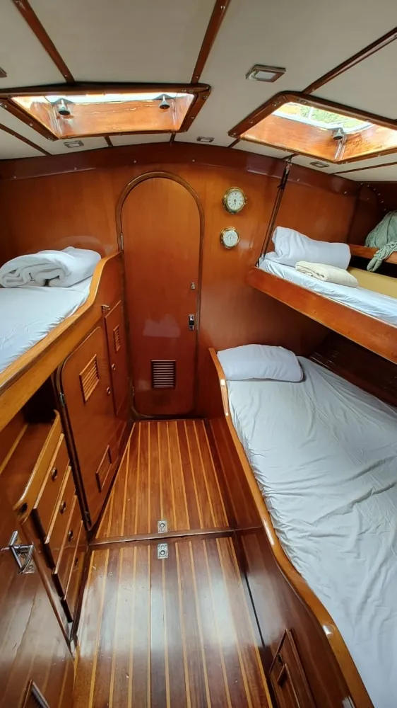 Resumo: Autêntico clássico de linhas elegantes da John G. Alden Company, projetado pelos arquitetos navais Kaufman & Ladd de Annapolis e construído pelo Estaleiro Mao Ta em Taiwan.