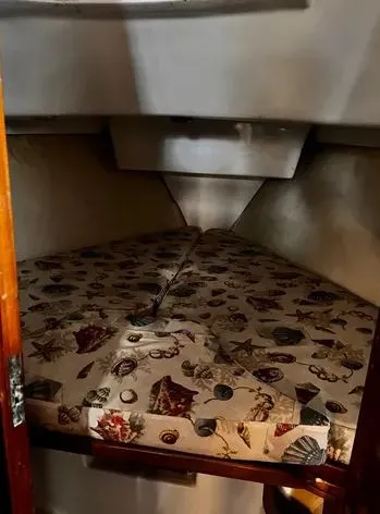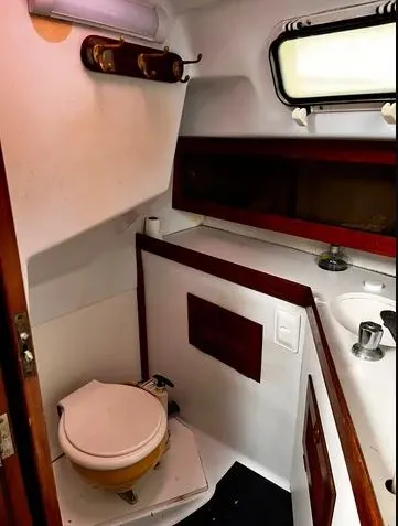 02 banheiros, sendo de proa com vaso sanitário elétrico